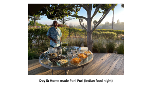 Most of the days, we spent lot of time at home enjoying the house and its beautiful landscape. Every day, we entertained ourselves by cooking different cuisine for dinners - Chinese (dumplings), American (pizza) and Indian (pani puri, chole and chicken curry).