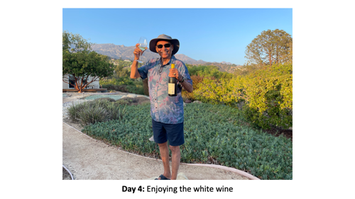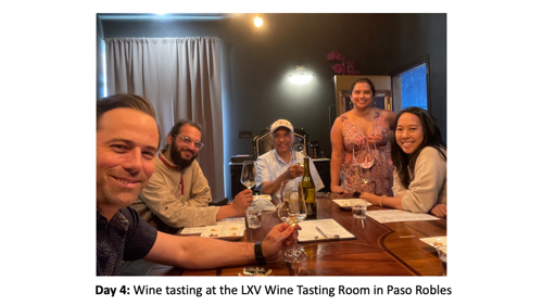 The house was on a hill-top overlooking other mountain tops far-away. It was perfect get-away for all of us. One day we went to Paso Robles for wine tasting at the LXV Winery which is about 2-hour drive NW of Santa Barbara. This boutique winery is owned by a couple originally from Mumbai.