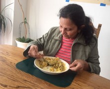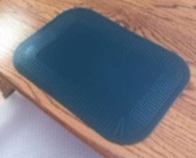 But another problem also needed my attention. While Sumi was eating she would fidget and move her plate, making it hard to eat. Sometimes, frustrated, she would even throw the plate and food from the table onto the floor. While searching for a solution I found a place mat made by a British company called Dycem. The place mat not only sticks to the table but sticks to whatever you put on it, keeping it still. Now, Sumi’s plate doesn’t move.