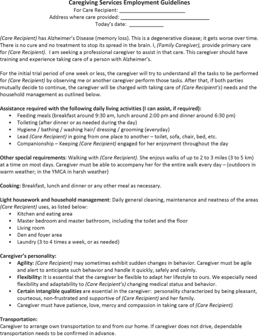- Needing round-the-clock assistance with her daily activities.