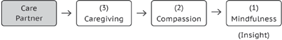 But for me, as a care partner, I am starting in reverse. Being thrust into becoming Sumi’s care partner has taught me compassion which has led to my self-insights which can develop into mindfulness. See Figure 3 below: