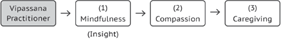 I say a reversed form of Vipassana because a true Vipassana practitioner first develops mindfulness and insight in order to gain compassion which would potentially make them a good caregiver. This is shown in Figure 2 below: