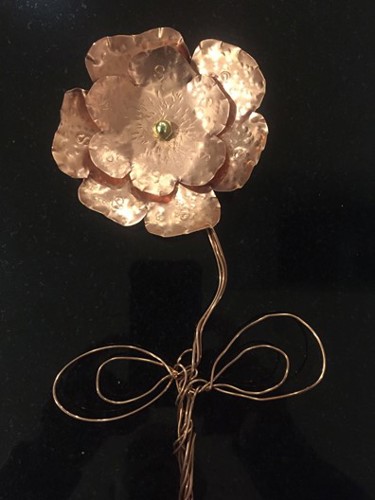 Last Thursday (March 22) I went to the second class of “The Art of Caregiving – for caregivers” That day, we made a flower from the thin sheet of copper and the stem from the copper wires. It involved, cutting the flower petals, putting design on the face and bending them in wooden molds by slightly tapping with a hammer. The process was very engaging and it reminded me of my high school and engineering college day. I was in the technical high school and later on in the Engineering college where we had Workshop period in which we made objects from the metal, wood, etc.