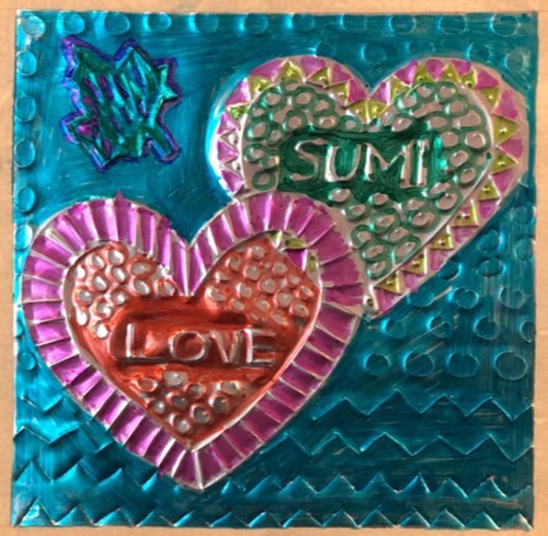 In today’s art class, we learned Repousse. It refers to metalworking technique in which malleable metal is shaped by hammering from the reverse side to create design in low relief.