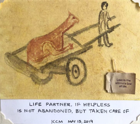 You may have seen a photo posted on MJWS by Chand Kenia, my college friend from India, in early March. It showed a man pulling a cart with his injured horse in the cart with a caption in Hindi:
