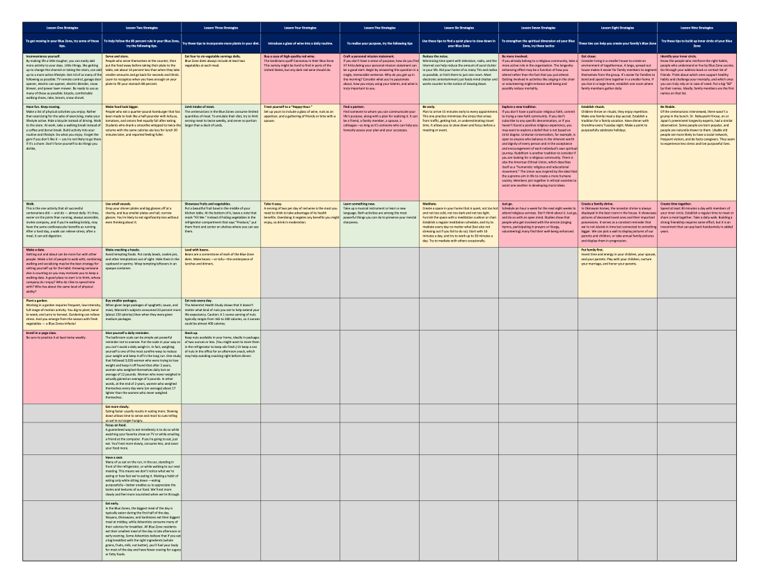 After sharing 9 Lessons from the Blue Zones book, I did my own assessment as to where I stand if I want to create my own Blue Zone. For the 9 lessons, there are total 41 items.